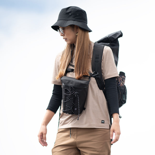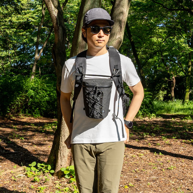 胸元にあるので足を上げるときに邪魔にならないしコンパクトだから足元も見えなくて困ることもなかった☺︎