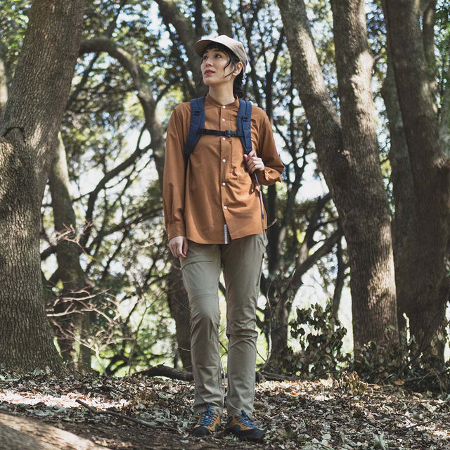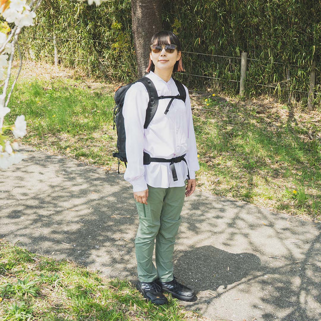 着用したままザックを背負ってしばらく歩いてみても、汗蒸れはあまり感じず汗染みもできにくかった印象です。